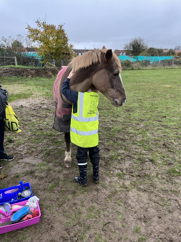 I do lots of different activities according to the individuals needs. It can be simply spending time in a non-judgemental space, grooming ponies, taking them for a walk, using aromatherapy oils with the ponies, making edible pictures, playing with bubbles., making obstacle courses to lead them round… there are endless ideas and I allow the sessions to be learner led wherever possible, so the individual can take ownership of the direction their leaning takes, building their confidence.